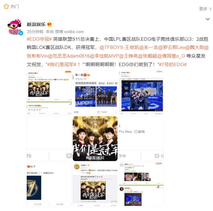 多位明星也表達(dá)了對(duì)EDG奪冠的祝賀
